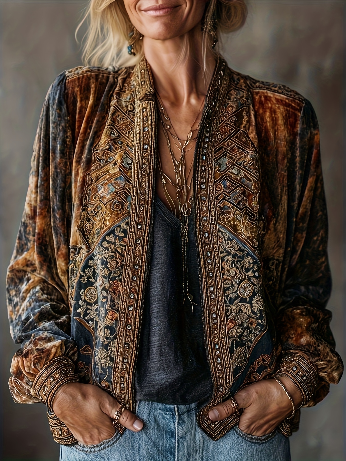 Elegant Paisley Print Winter Jacket with Puffed Sleeves – H-Line Regular Length Coat, Machine Washable Outer Coat for Fallu002FWinter, Casual & Smart-Casual Outerwear