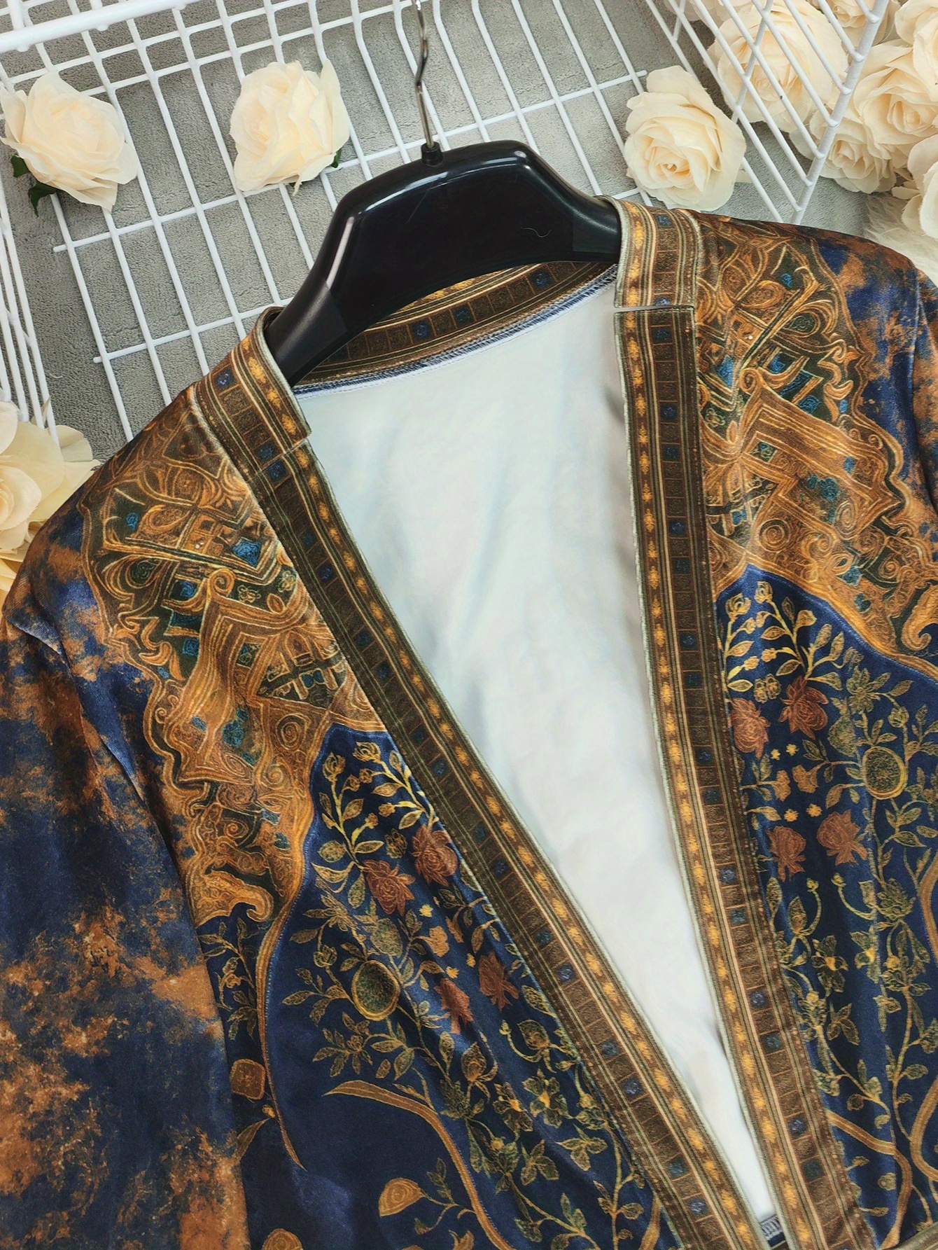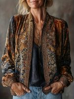 Home Women's Coats & Jackets Elegant Paisley Print Winter Jacket with Puffed Sleeves – H-Line Regular Length Coat, Machine Washable Outer Coat for Fallu002FWinter, Casual & Smart-Casual Outerwear