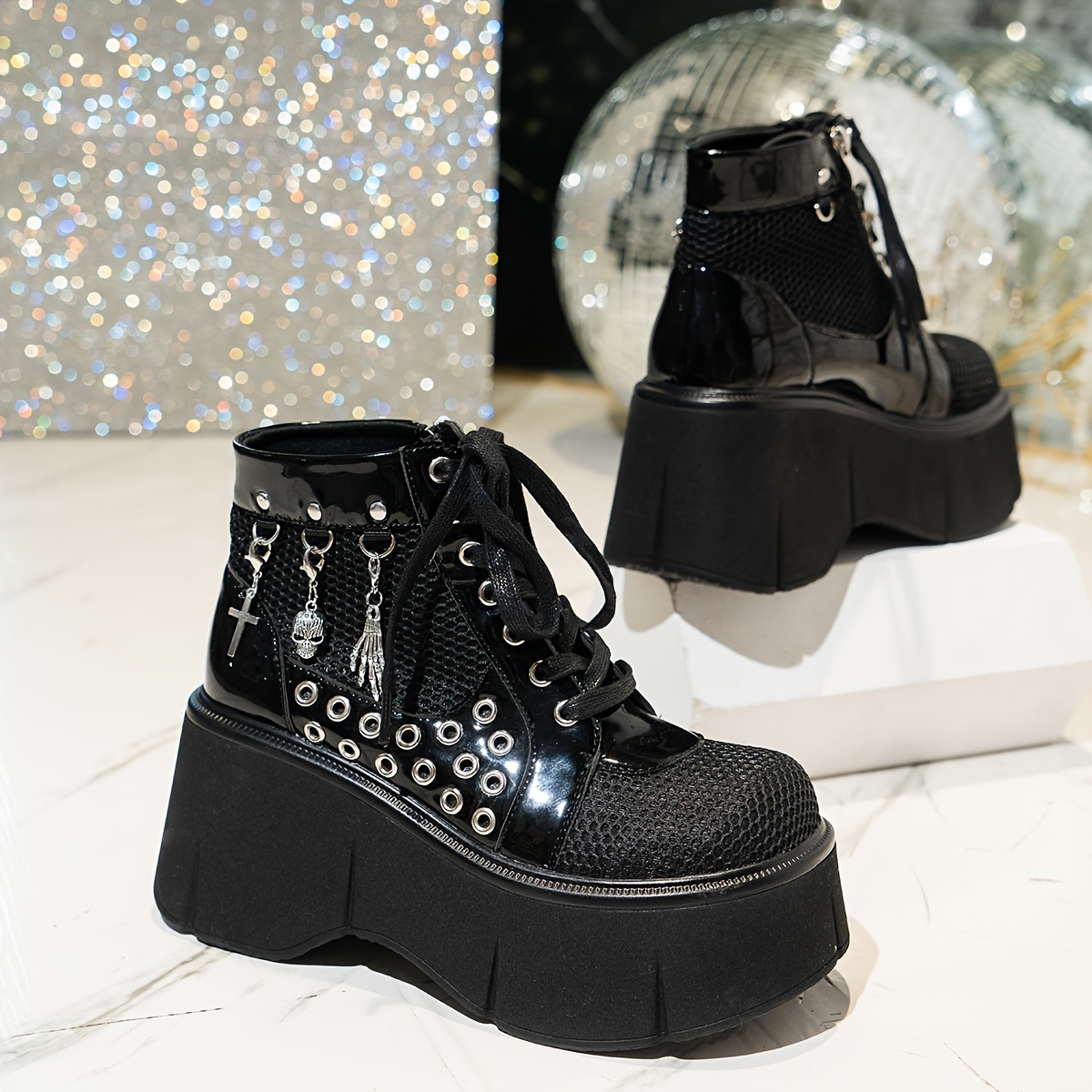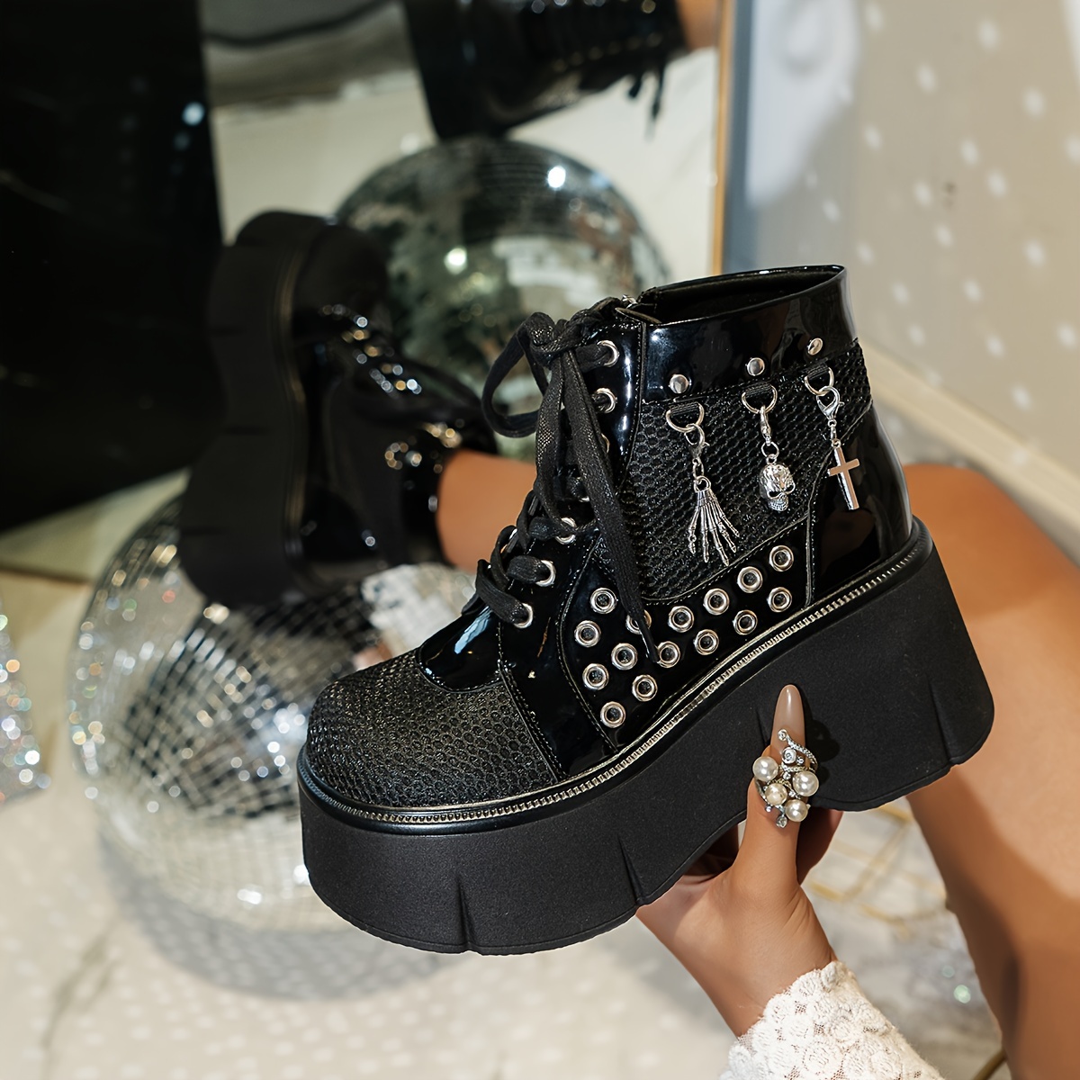 Be the first to review “Women’S Black Punk Boots with Skull & Crossbones Design – High Heel, Lace-Up, Round Toe, Faux Cover, All-Season Fashion Statement for Halloween or Goth Style, Gothic Fashion Boots | Skull Embellished Boots | Glossy Finish Boots” Cancel reply