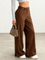 Home Women's Pants Women’s Corduroy Pants Button-Fly Slit Hem Mid-Waist Straight Leg Trousers – Solid Color Casual Winter Pants, Machine Washable Loose Fit for Jeans, Dresses & Sweaters (Corduroy all-Season)