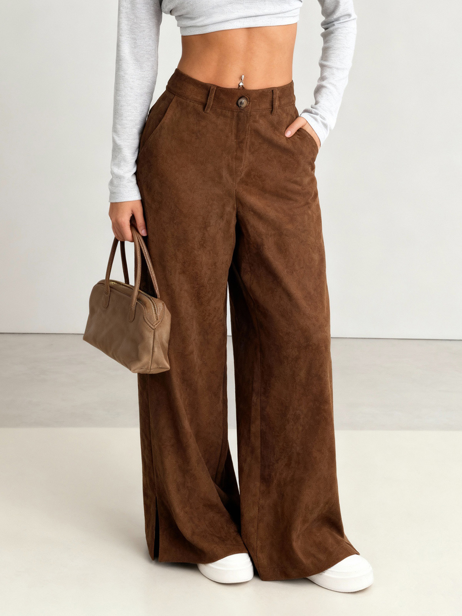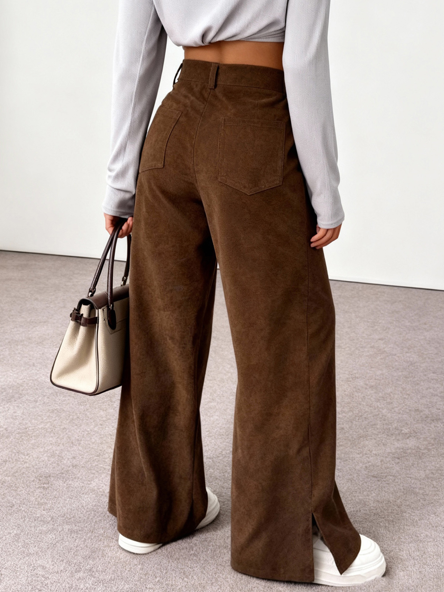 Women’s Corduroy Pants Button-Fly Slit Hem Mid-Waist Straight Leg Trousers – Solid Color Casual Winter Pants, Machine Washable Loose Fit for Jeans, Dresses & Sweaters (Corduroy all-Season)