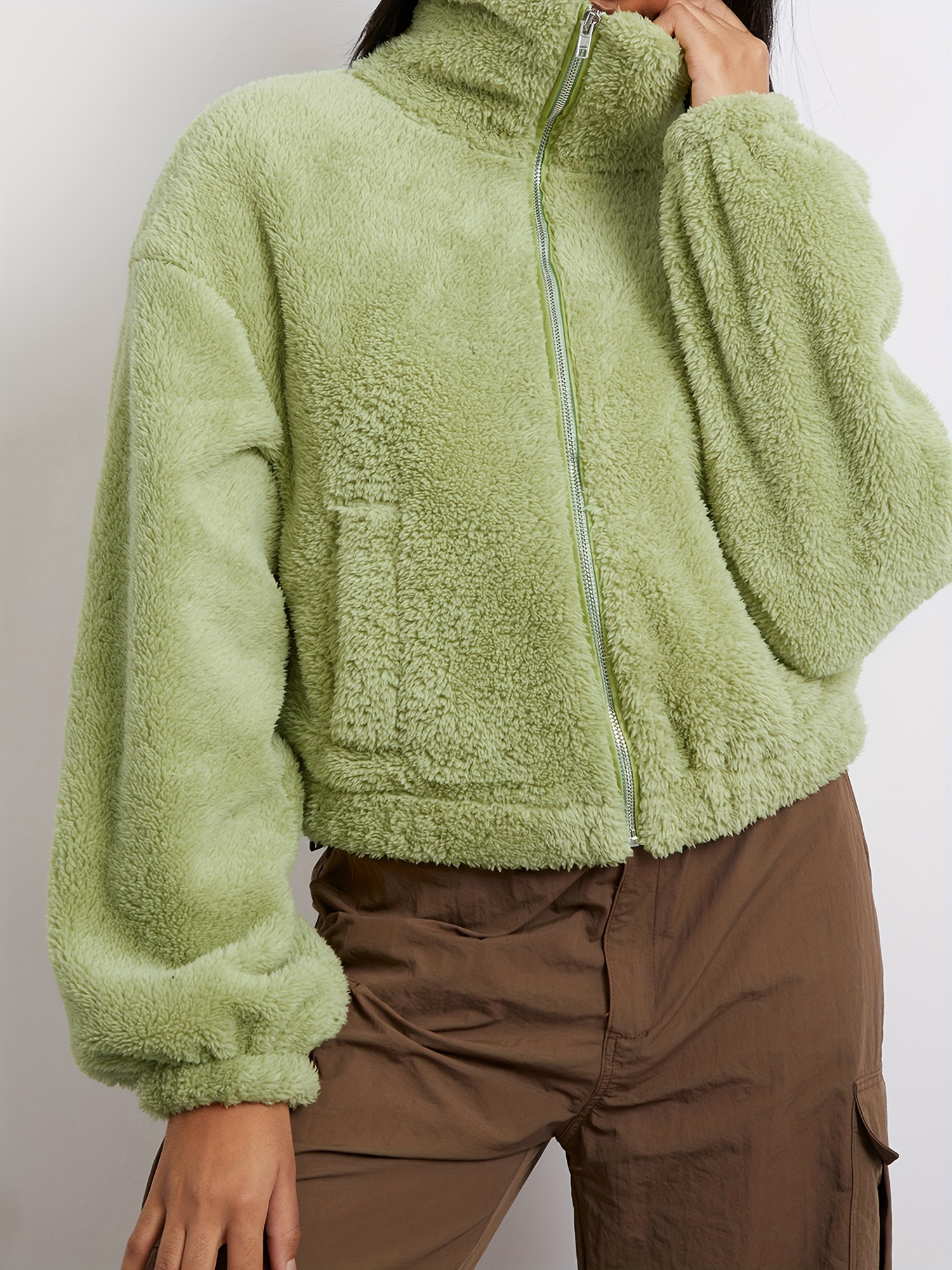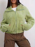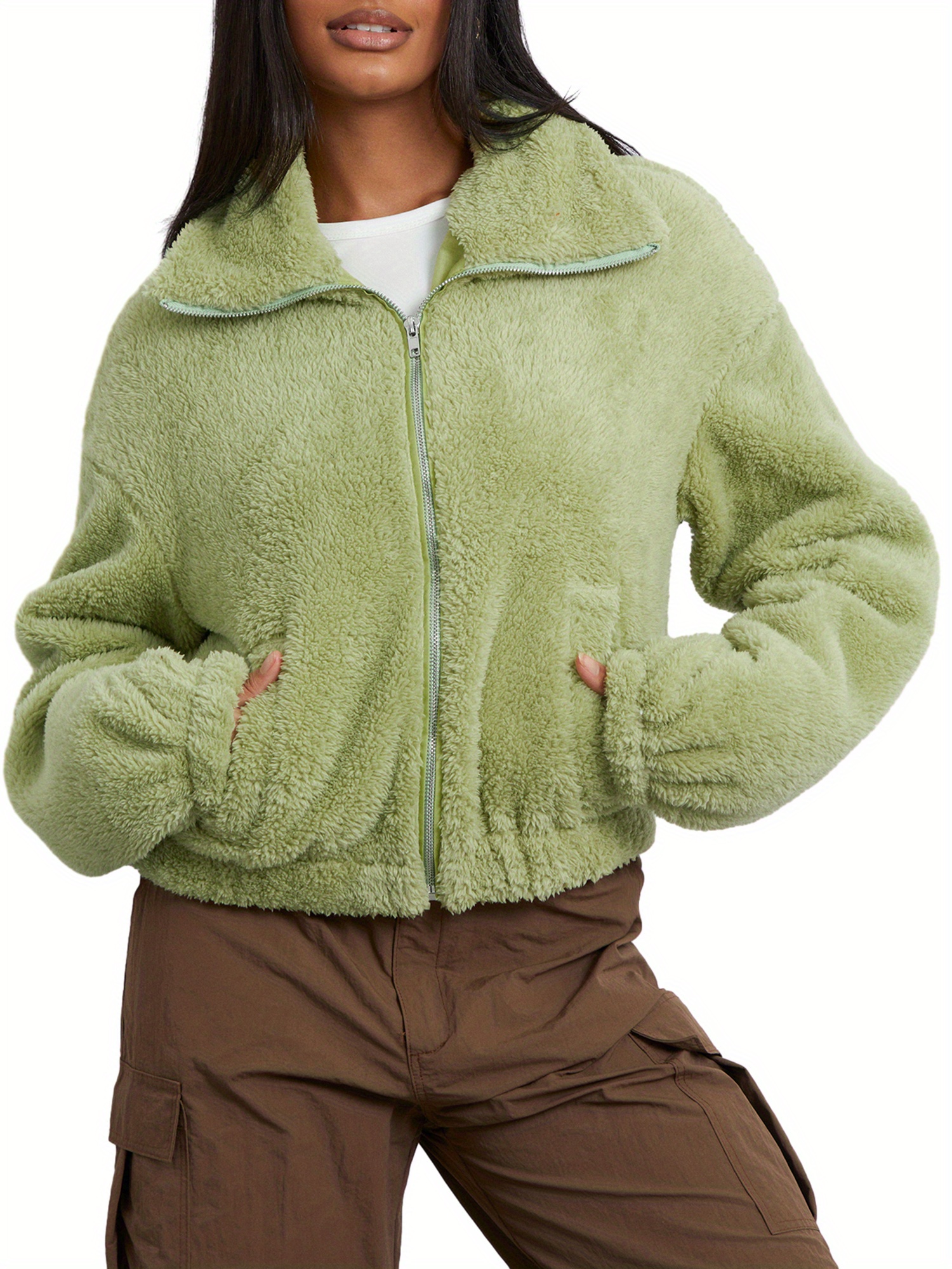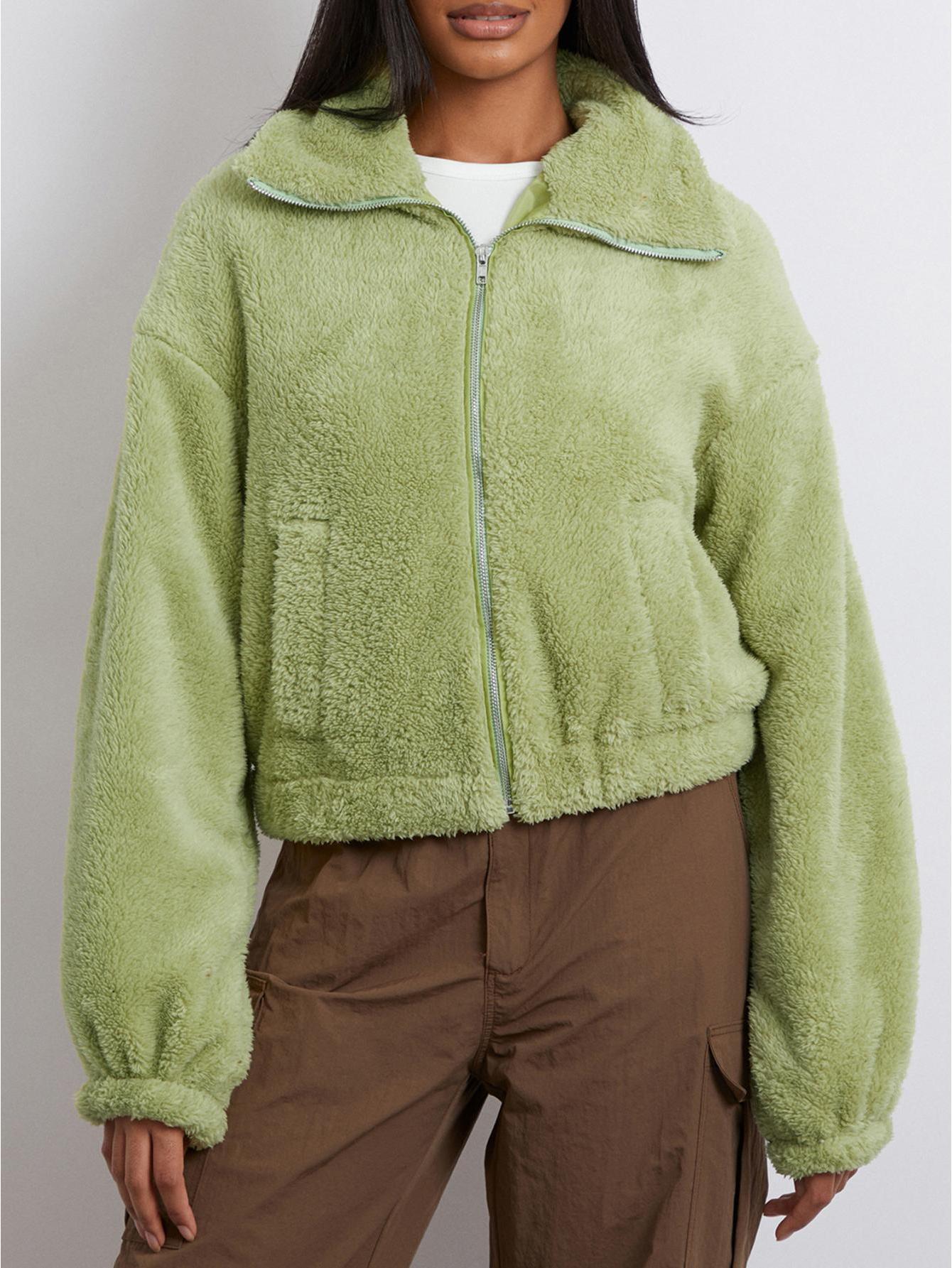 Home Women's Coats & Jackets Women’s Cozy Fleece Winter Jacket – Long Sleeve Zipper Outerwear with Pockets, Soft & Warm Green Casual Coat for Cold Weather, Casual Winter Wear | Casual Style Jacket | Plush Polyester Jacket, Winter Coat