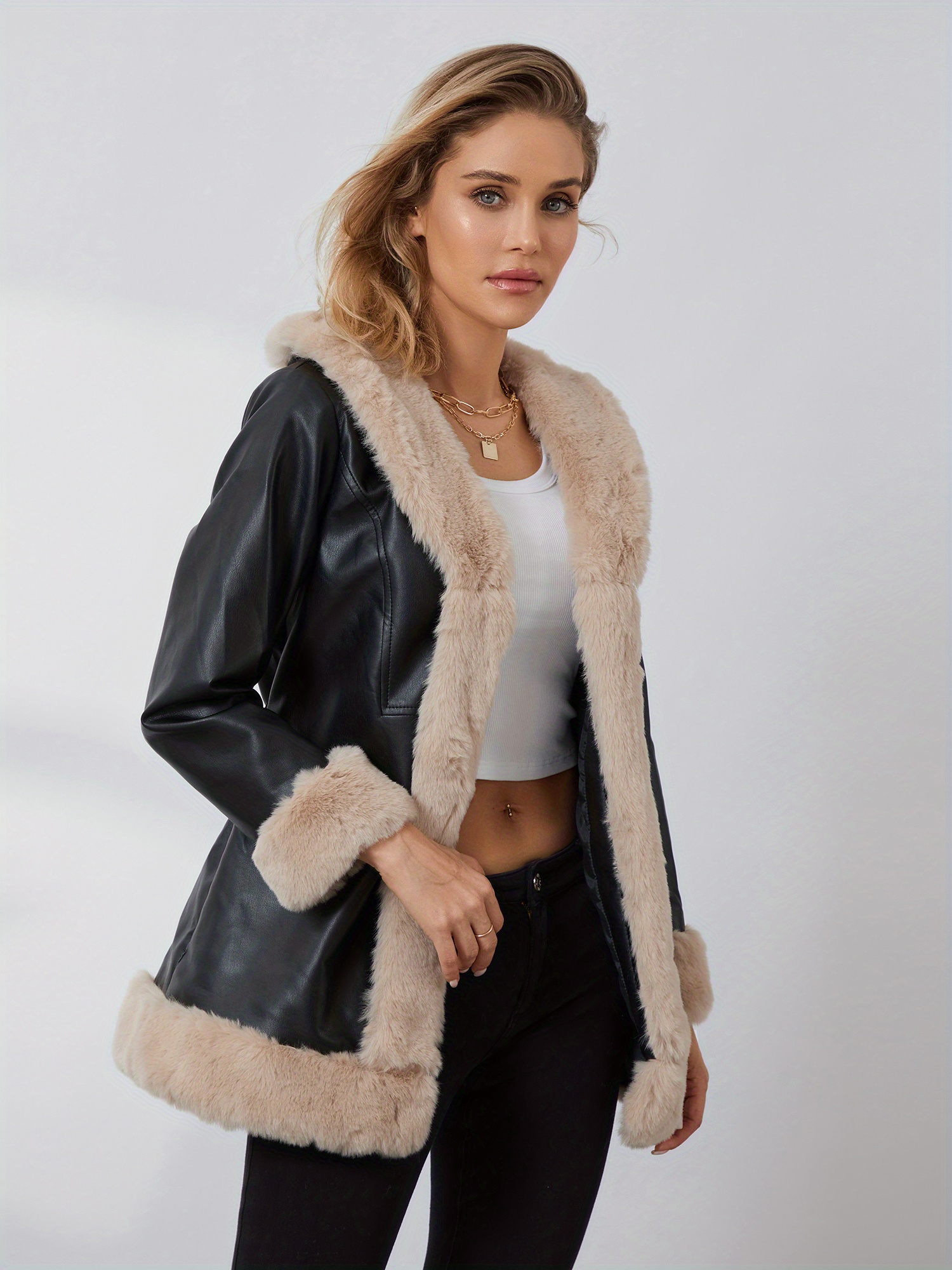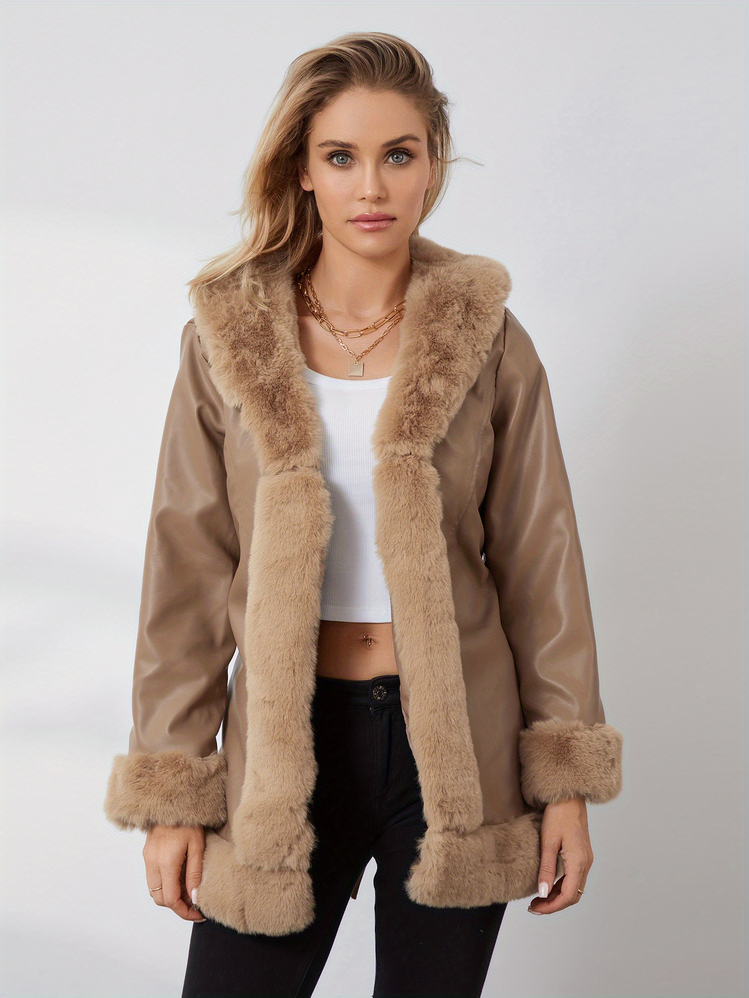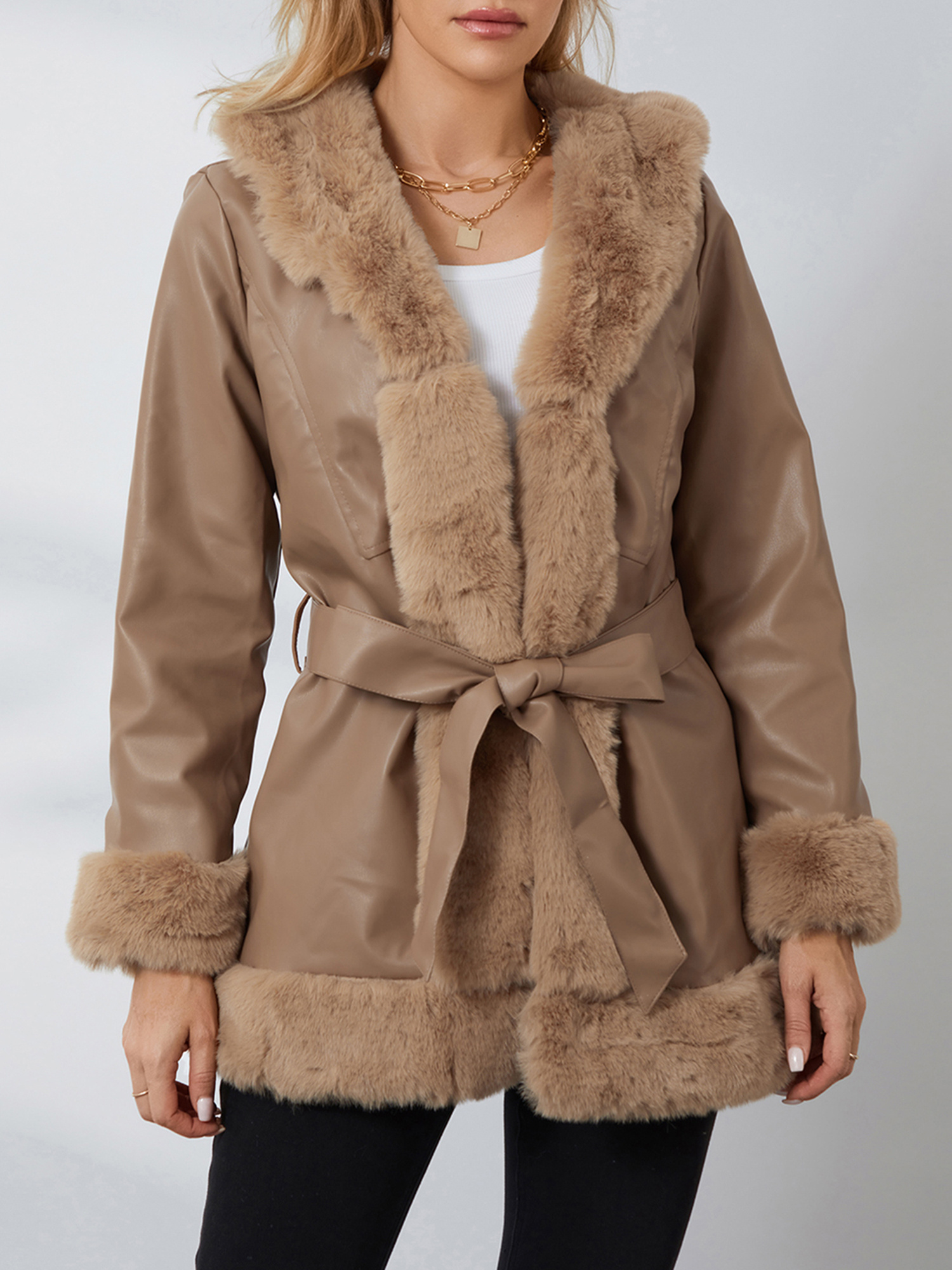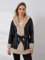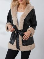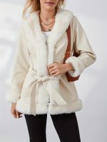 Home Women's Coats & Jackets Women’S Elegant Jacket with Plush Collar and Belt – Solid Color, Open Front, Warm Cardigan for Fallu002FWinter, Streetwear Style, Streetwear Jacket | Contrast Color Jacket | Functional Cardiga