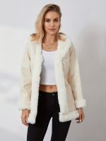 Women Winter Coat, Solid Color Zipper Up Folded Collar Jacket, Long Sleeve Warm Fluffy Fleece Spring Outfit