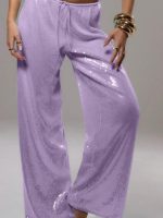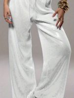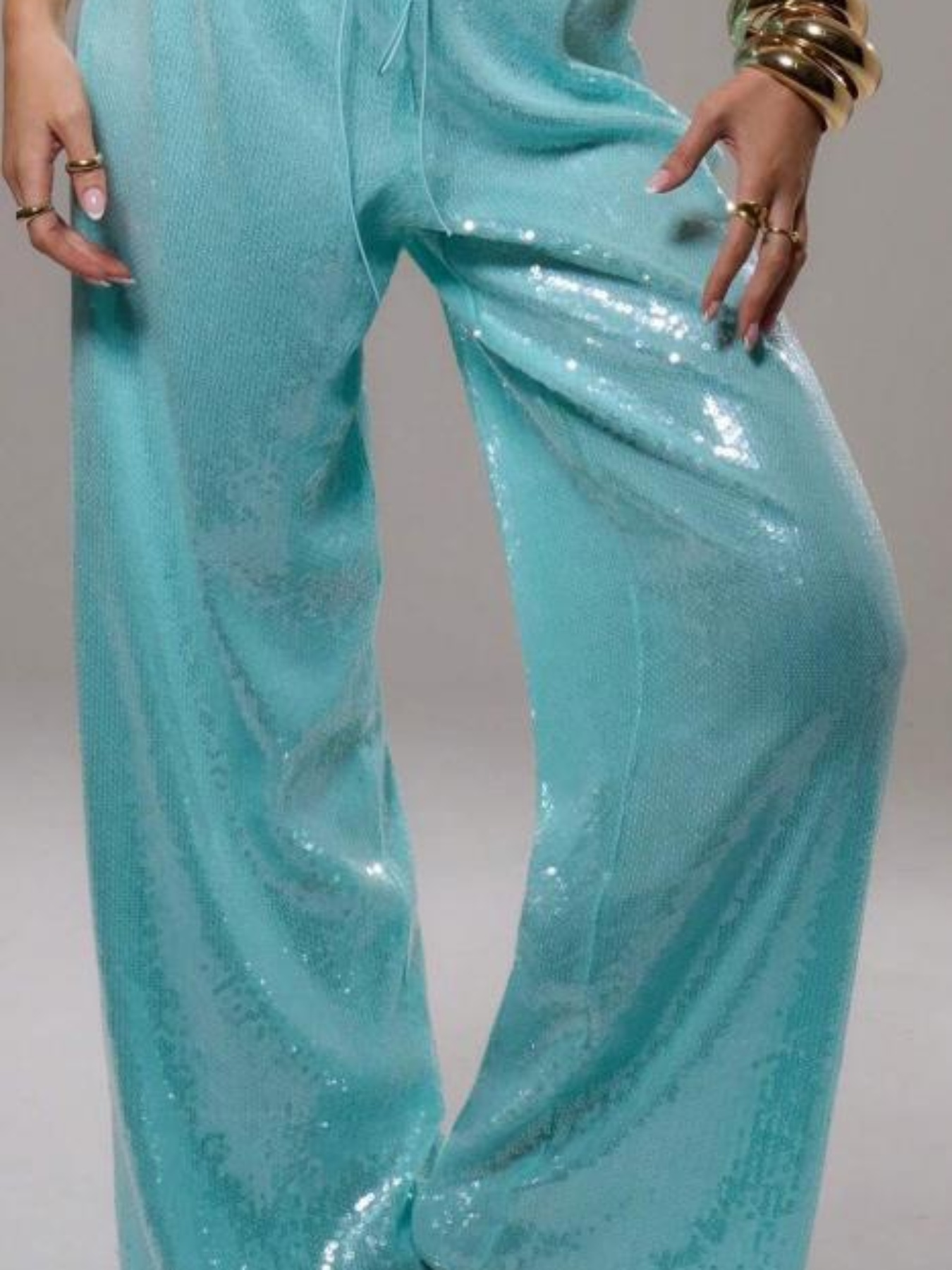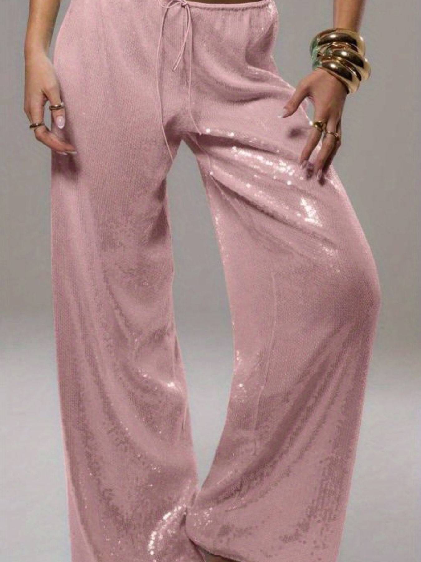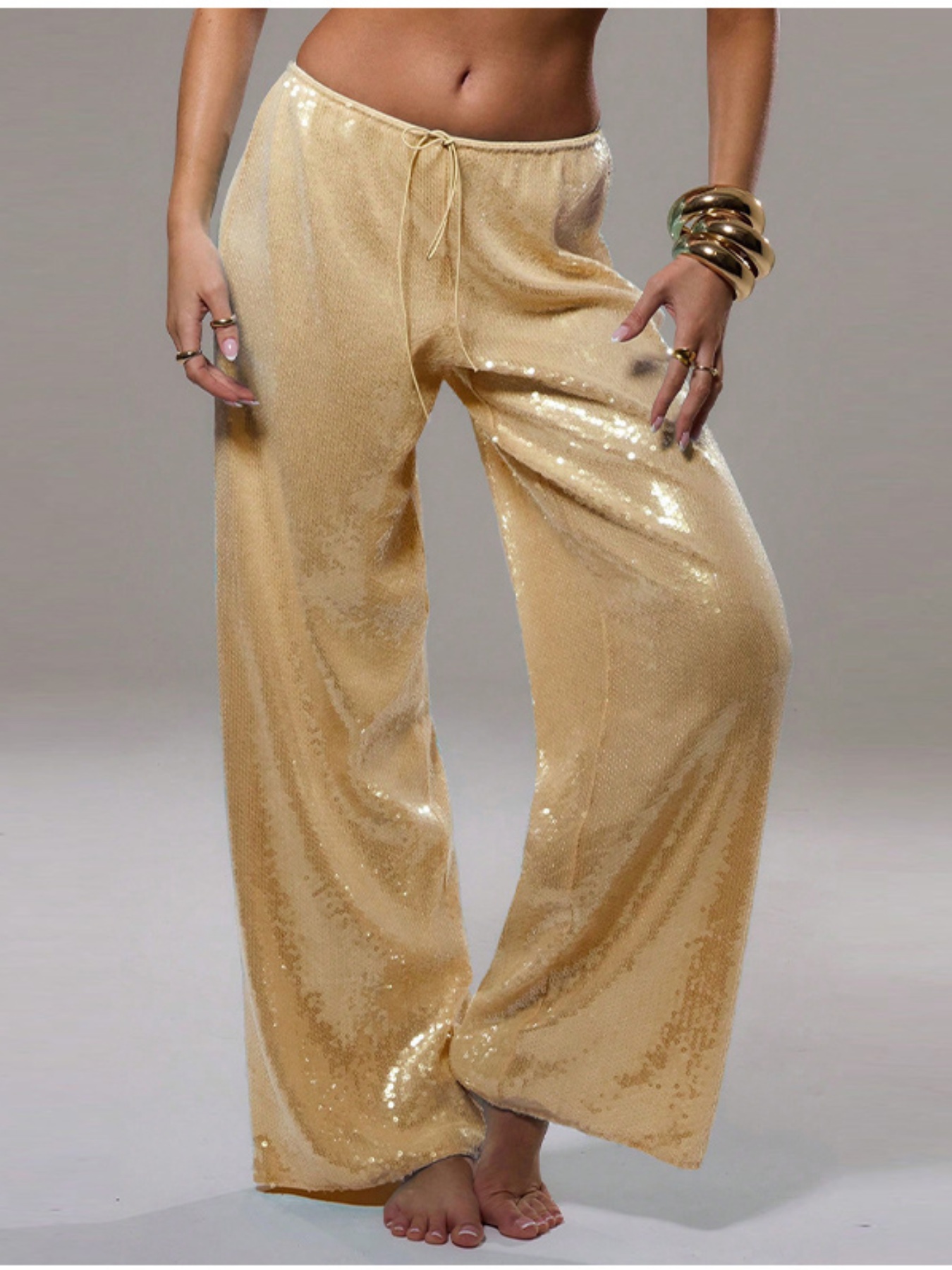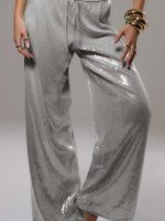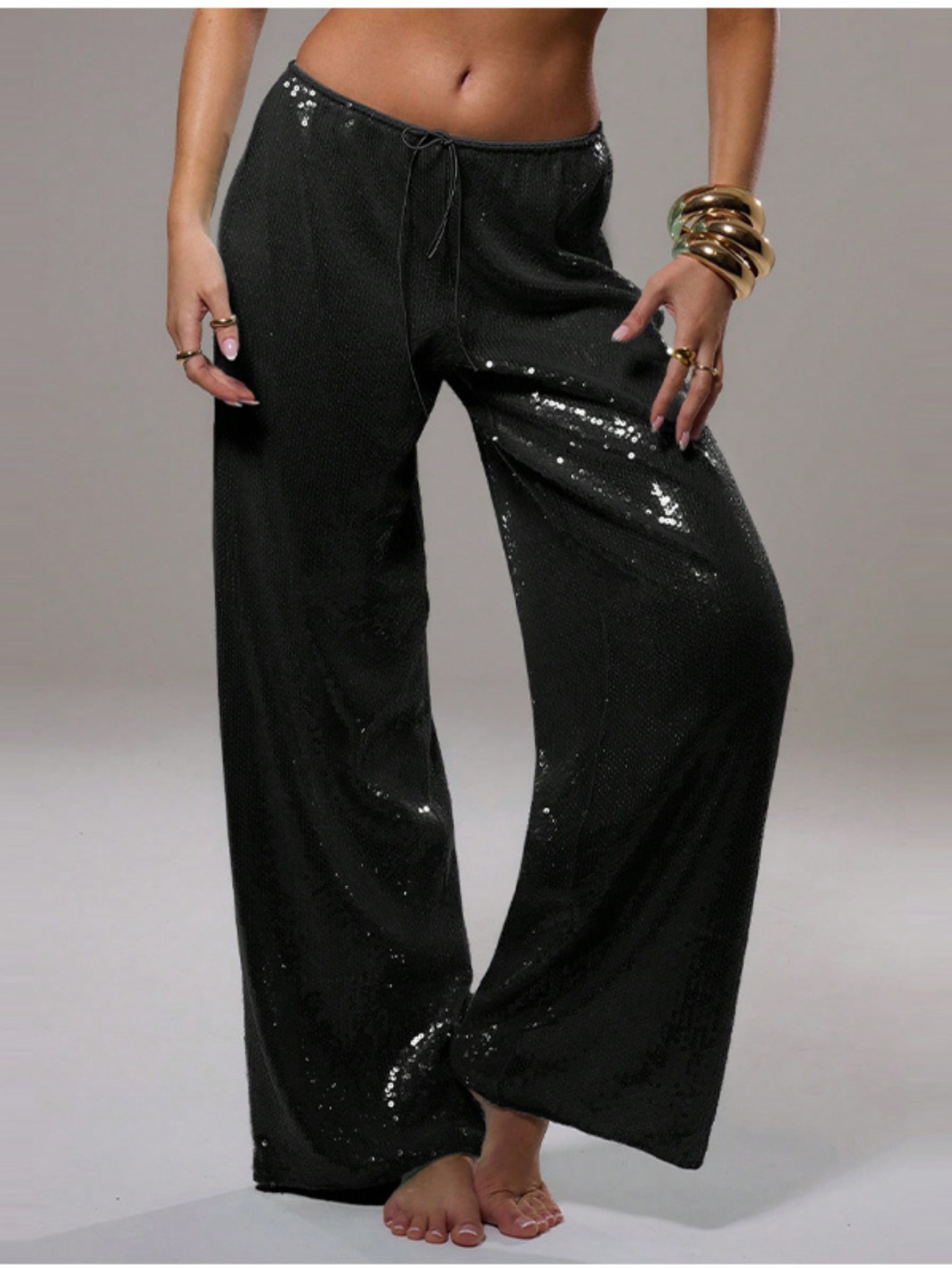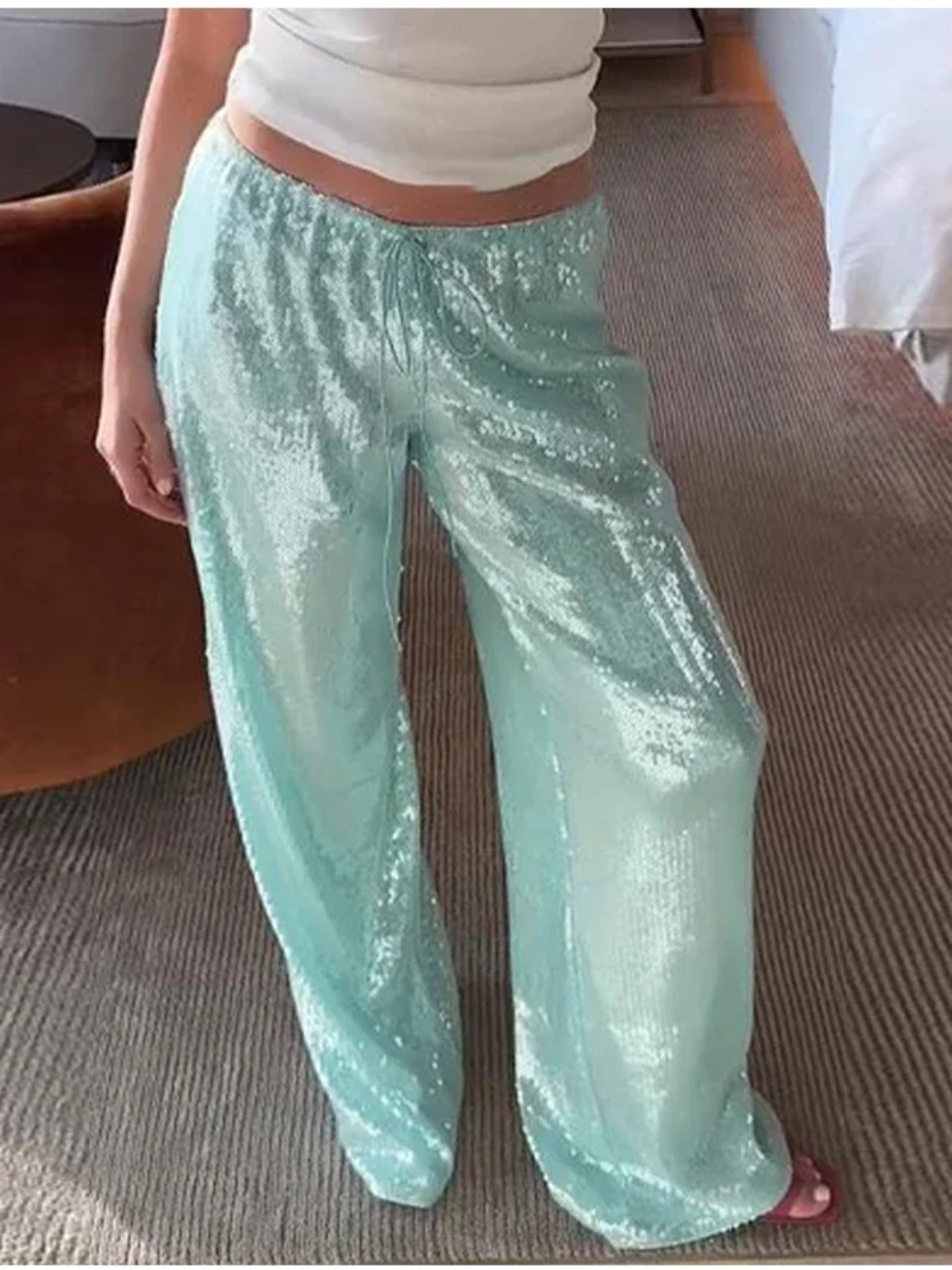 Women’S Elegant Sequin Pants – Lightweight Low-Rise Wide-Leg Glitter Trousers with Shimmering Sequins, Y2K Style Party Clubwear for Nightclub, Prom, Gala & Casual Attire – All-Season Sparkly Disco Pants with Pockets (Solid Color Base)