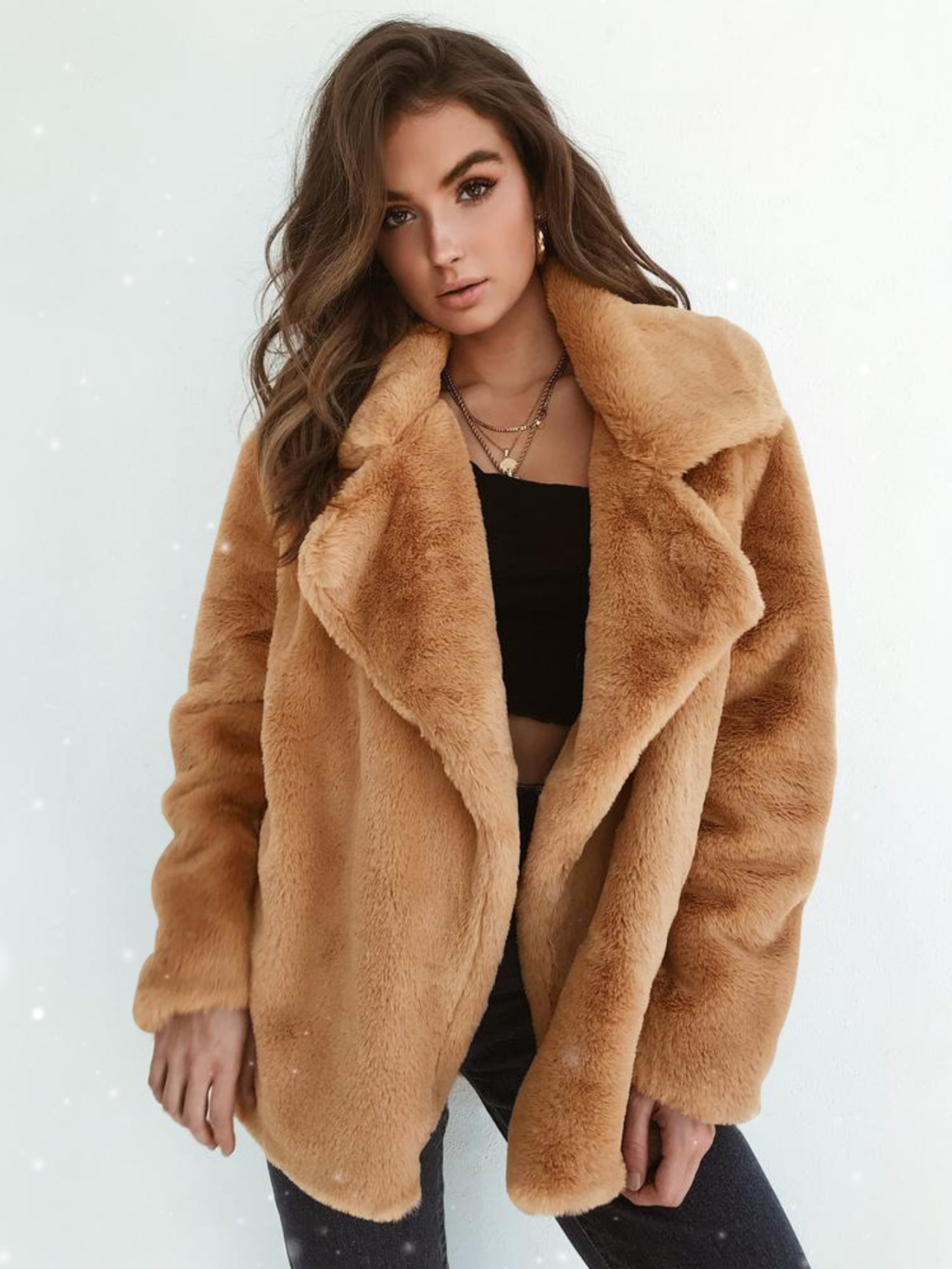 Women’S Fashion Winter Short Jacket with Lapel Long Sleeve Puffy Coat