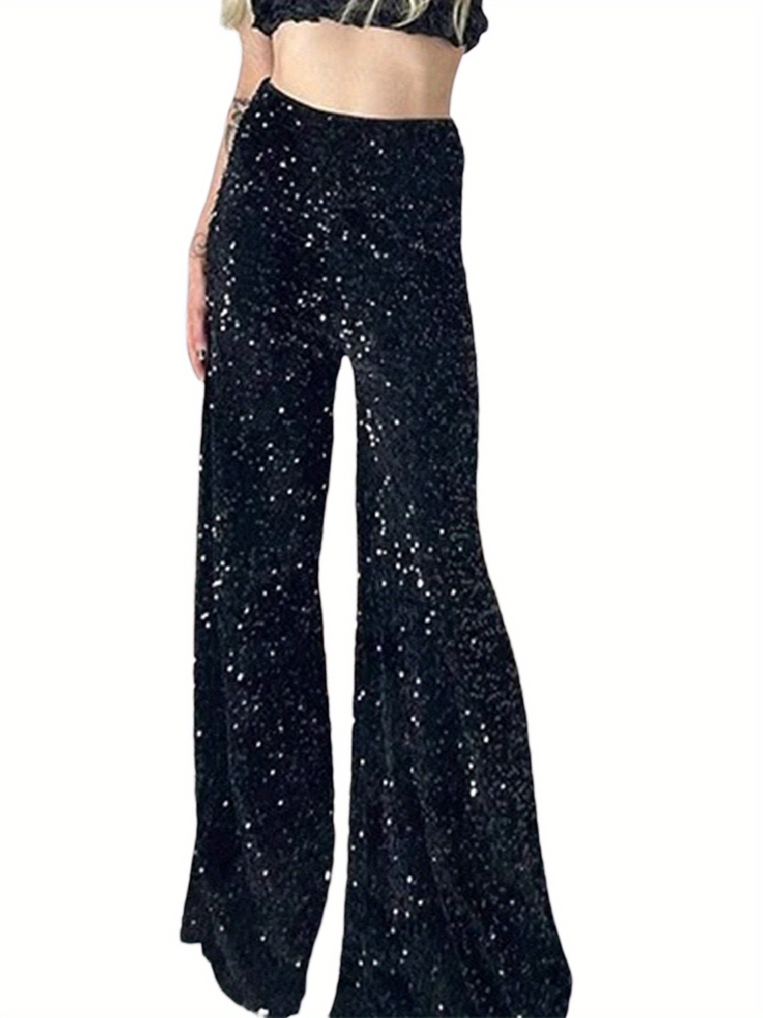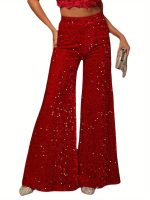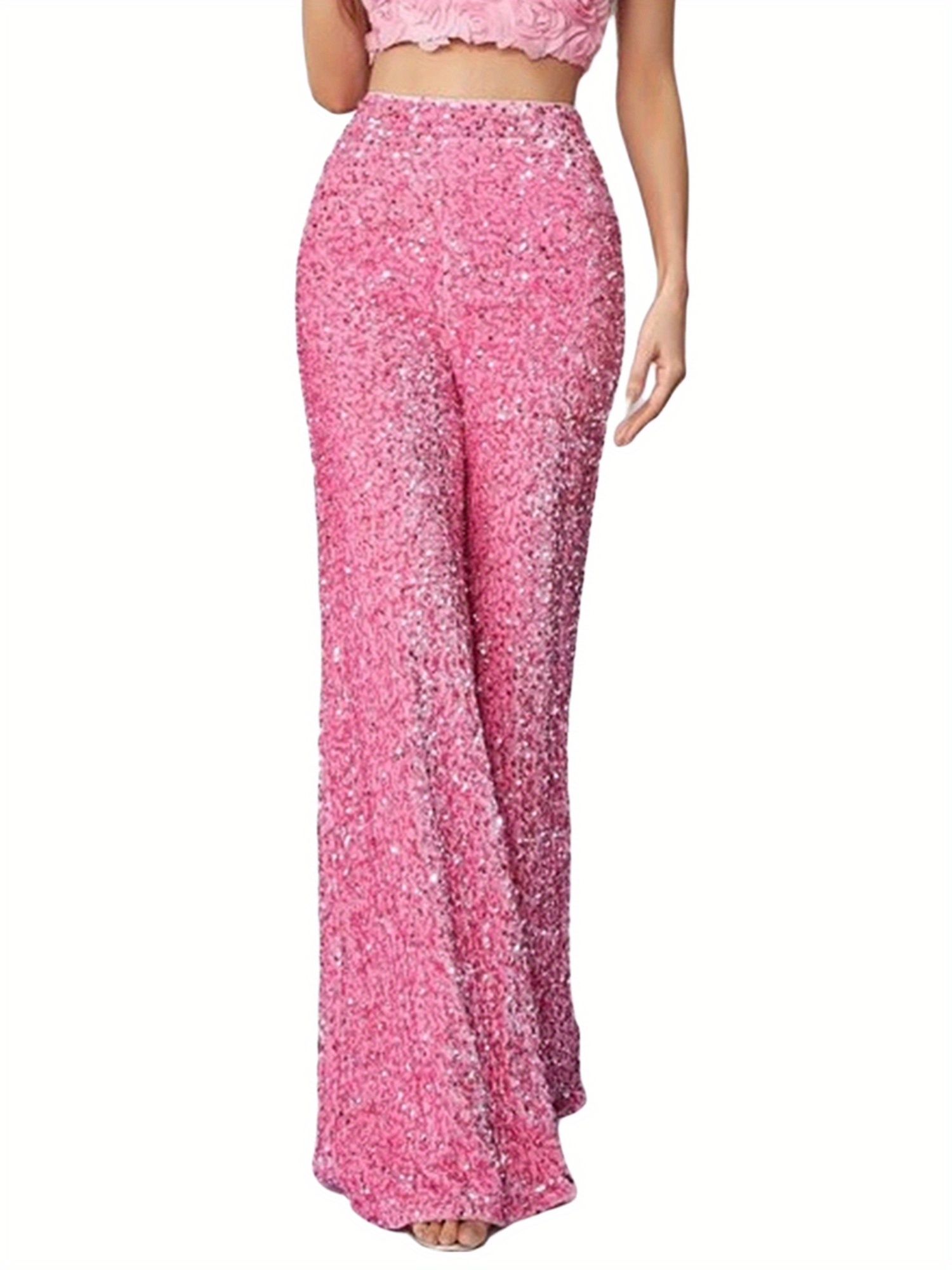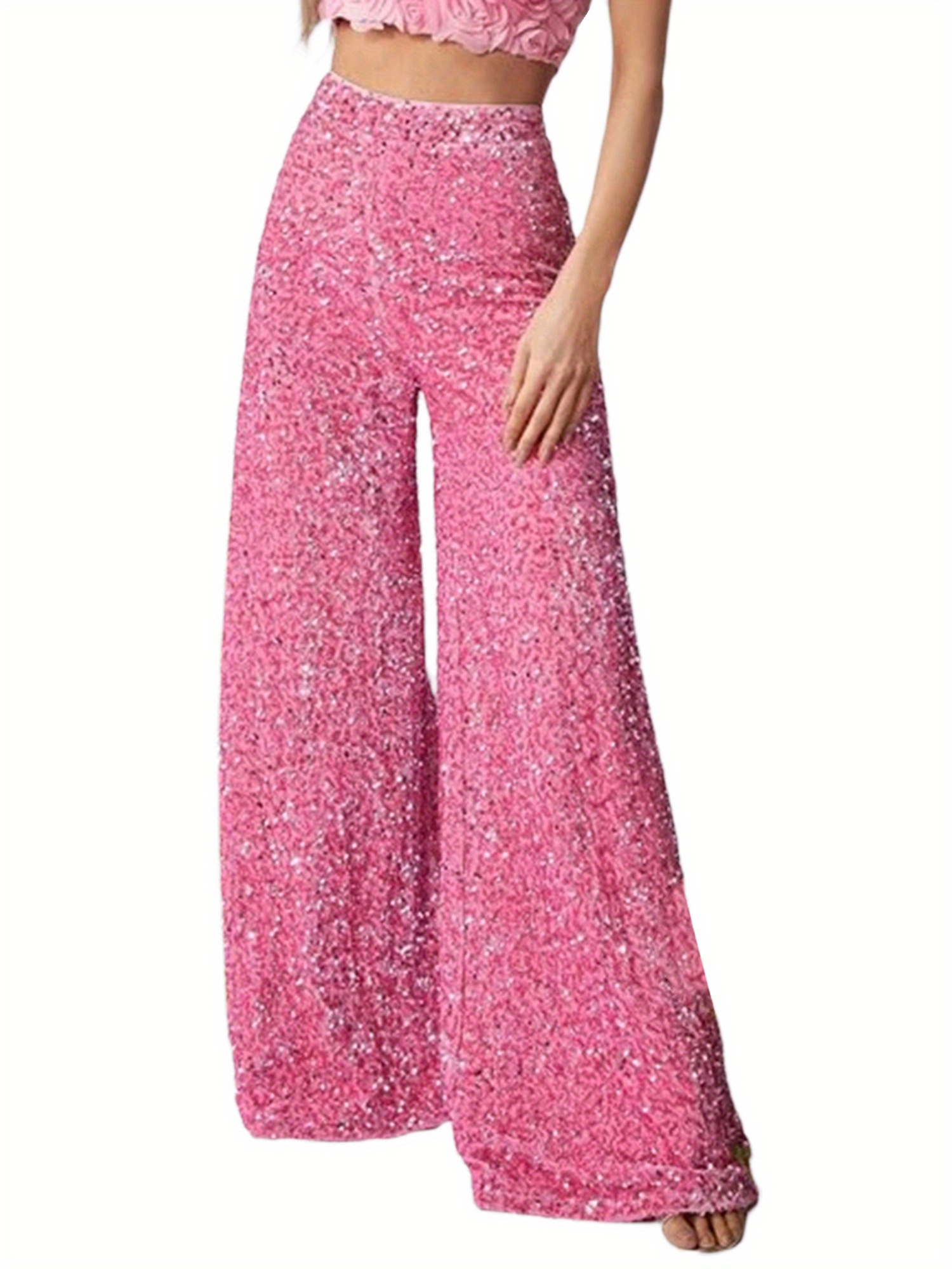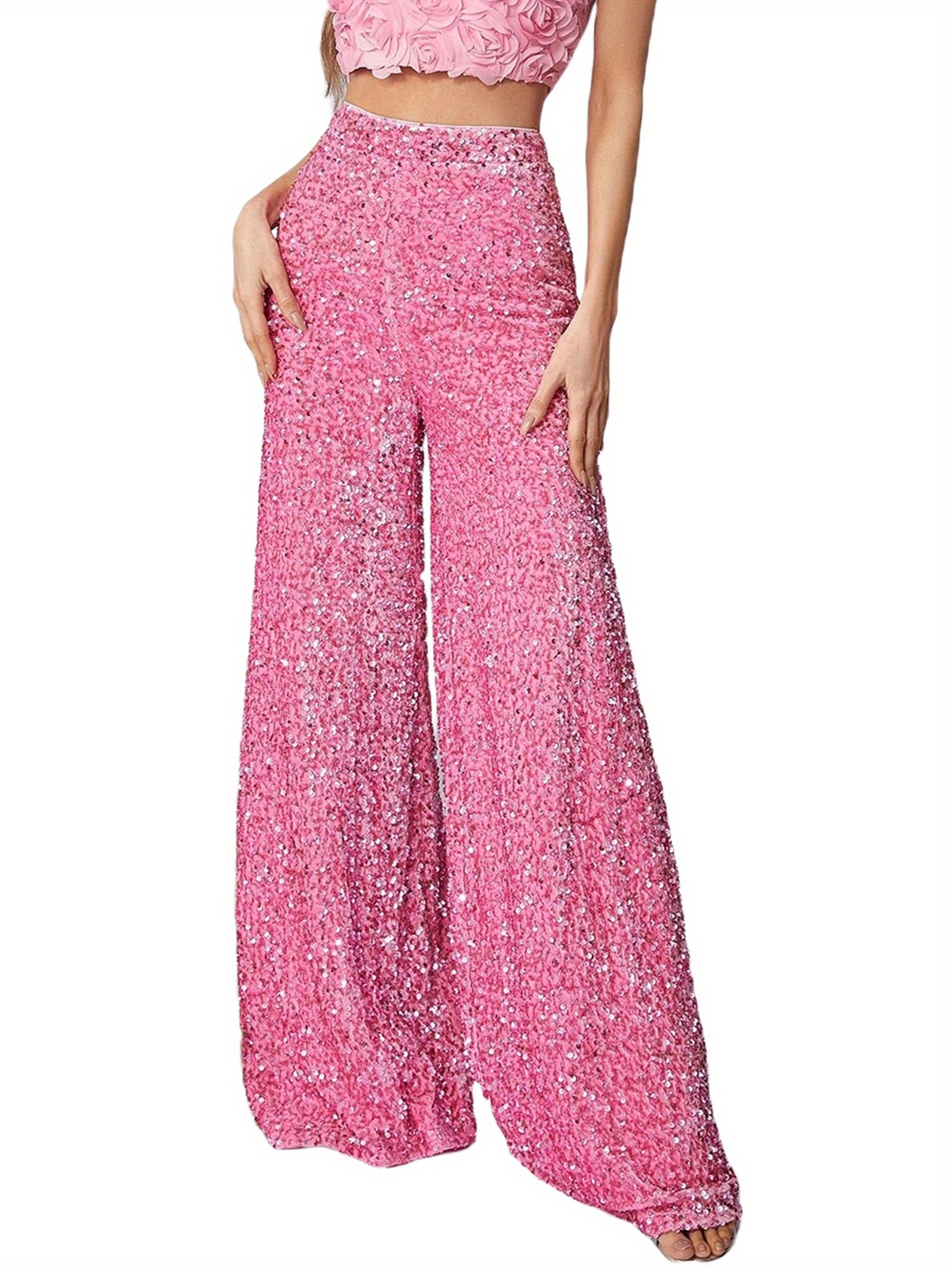 Women’s Shiny Sequin Wide Leg Pants with Elastic High Waist – Sparkling Loose Fit Trousers for Work, Office, Party & Streetwear | Winter Dress Pants (Casualu002FShiny, No Stretch)