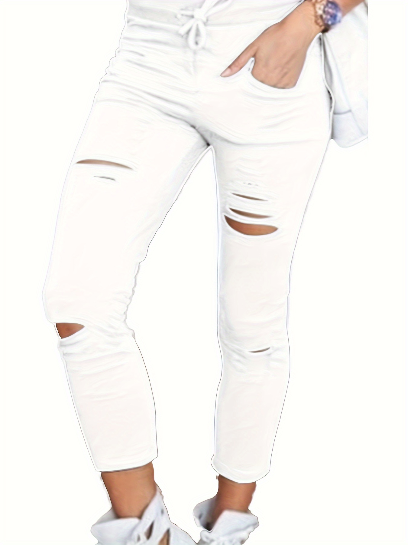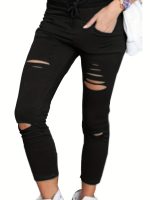 Home Women's Pants Women’S High-Waisted Ripped Stretch Denim Jeans – Butt Lifting & Distressed Skinny Pants, Casual M-XXL, Black, Springu002FSummeru002FFall Wear, High Waisted Jeans