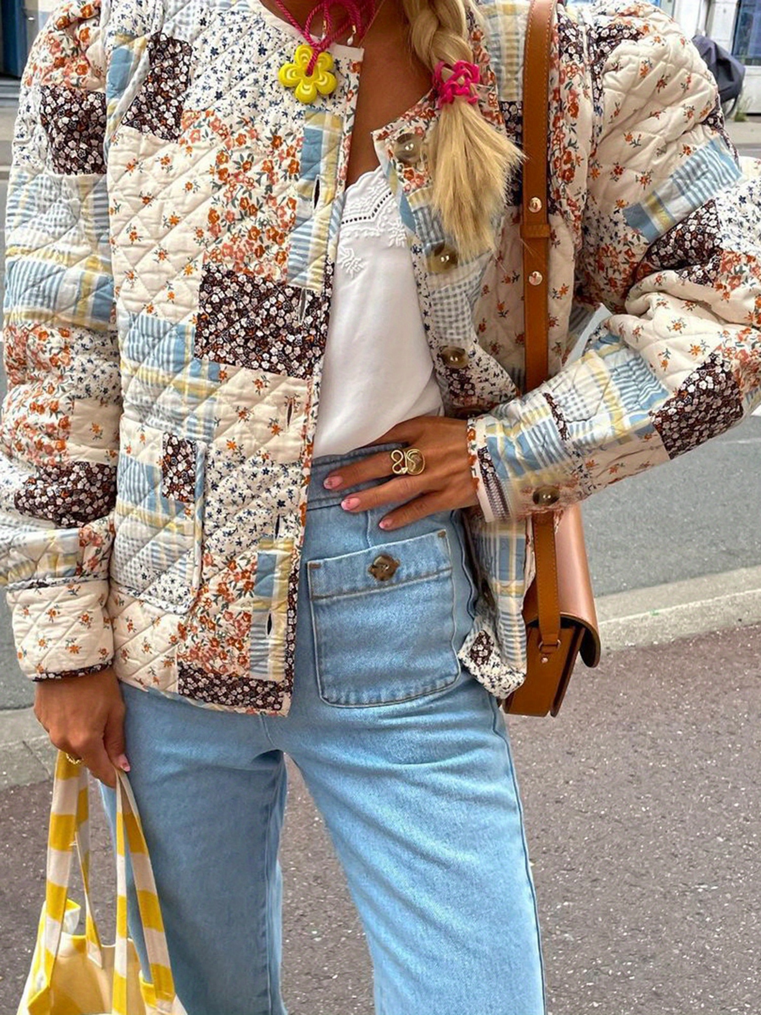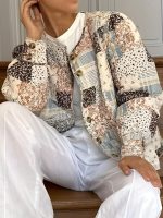 Home Women's Coats & Jackets Women’S Lightweight Floral Print Quilted Jacket – Vintage Style Long Sleeve Button-Up with Pockets, Beige & Blue Floral Pattern, Casual Streetwear for Springu002FFall Outfits, Casual Wear Jacket | Vintage Floral Print | Buttonup Front, Lightweight Jacket