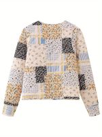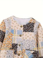 Women’S Lightweight Floral Print Quilted Jacket – Vintage Style Long Sleeve Button-Up with Pockets, Beige & Blue Floral Pattern, Casual Streetwear for Springu002FFall Outfits, Casual Wear Jacket | Vintage Floral Print | Buttonup Front, Lightweight Jacket
