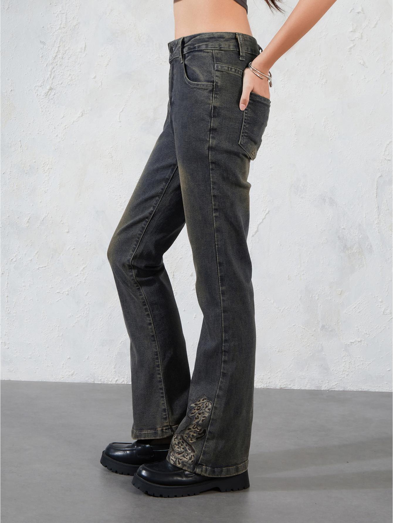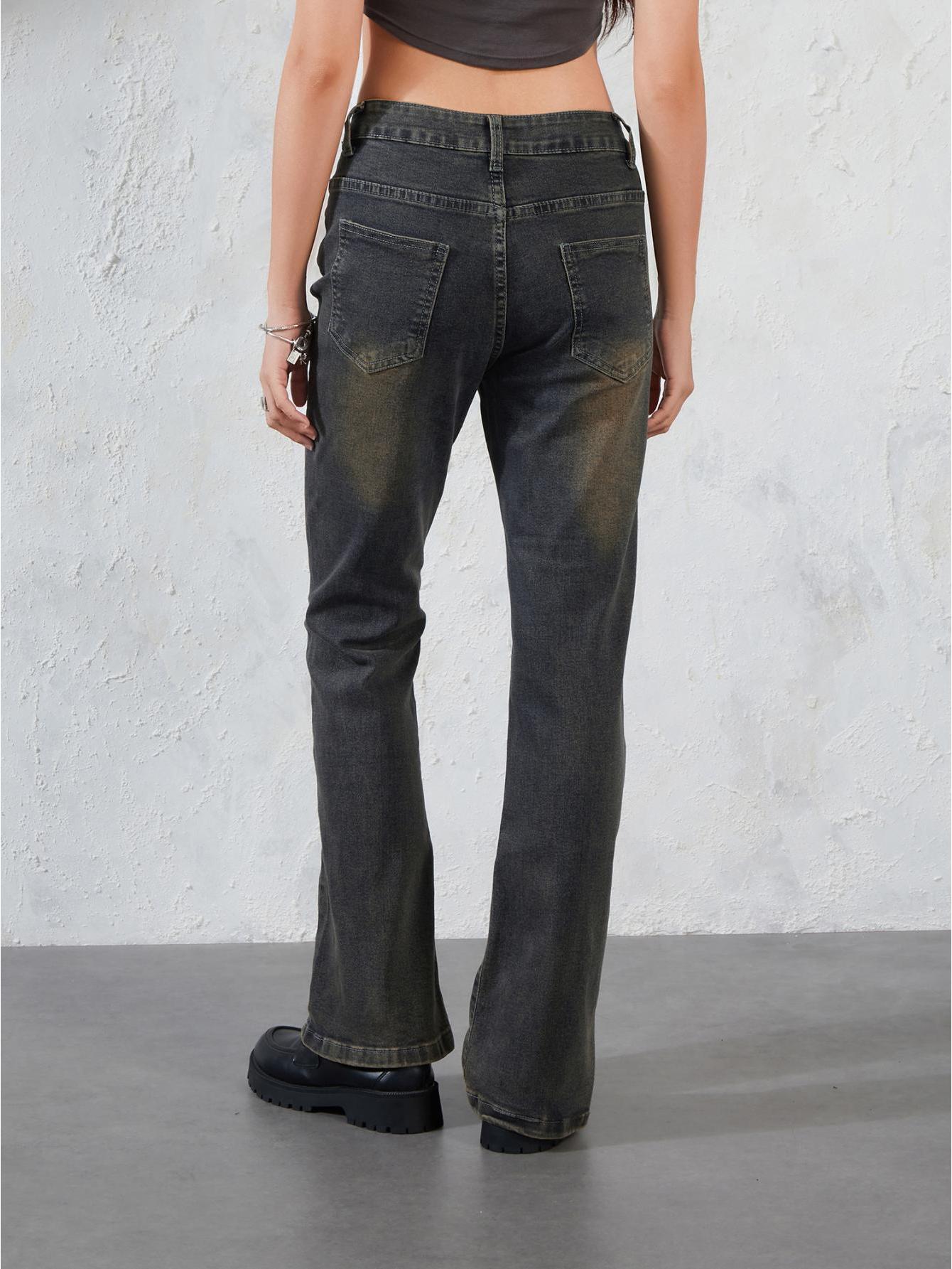 Women’s Mid-Rise Bell-Bottom Jeans – Stretchy Cotton Casual Pants with Button Closure, All-Season Comfort & Machine Washable Design for Casual Attire