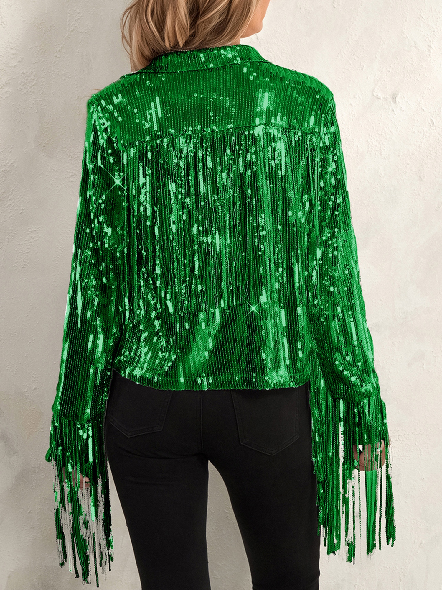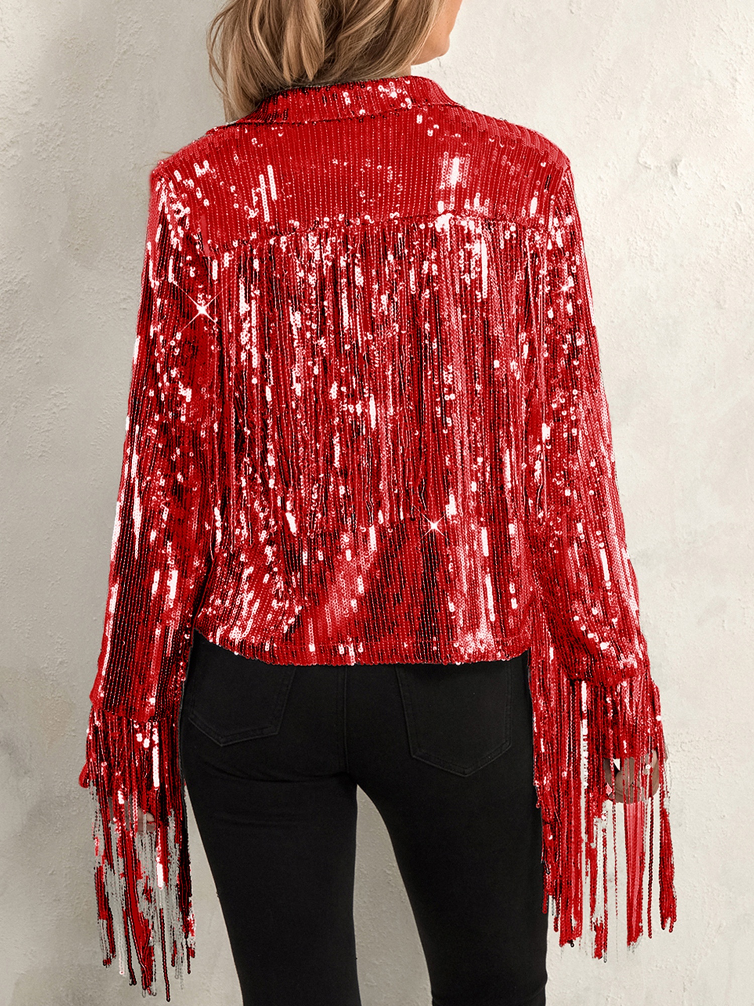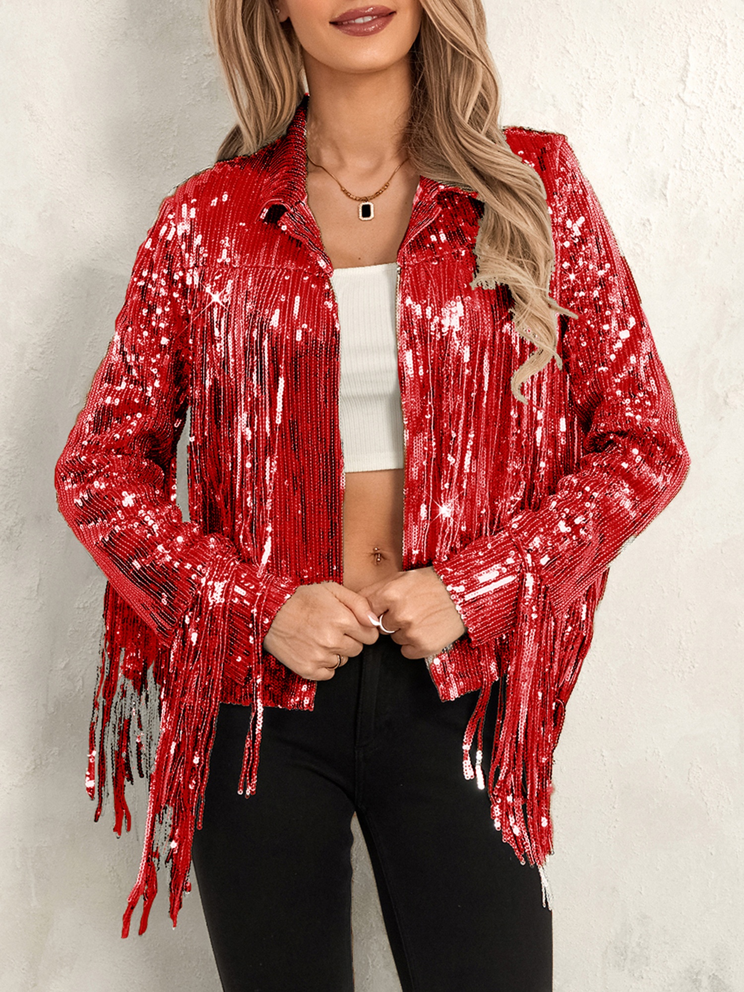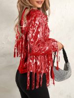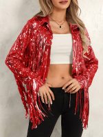 Women’s Red Sequin Cowgirl Jacket – Party & Everyday Outerwear Coat with Long Sleeves, Lightweight Non-Stretch Jacket for Club, Festival, Casual Outfits – Machine Washable Retro Western Blazer