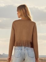 Women’s Solid Color Tassel Jacket – Long Sleeve Casual Fall Blazer, Machine Washable Spring Summer Outerwear for Party & Daily Wear, Elegant Tassel Details (No Elastic Fabric) – In Stock