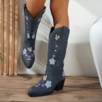 Women’S Western Style Mid Leg Boots | Exquisite Embroidered Upper with High-quality Stitching, One-foot Pointed Toe with Thick Heel, Pure Handmade Fabric Insoles, Suitable for Daily Wear and Travel Parties