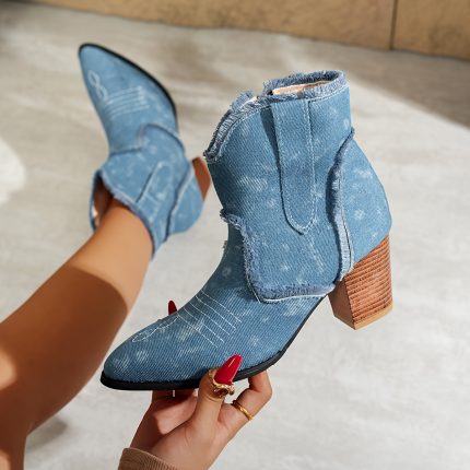 New European And American Style Pointed Toe Chunky High Heel Side Zipper Casual Boots for Autumn And Winter., Vintage Boots for Women, Winter Boots for Women Elegant Classy, Plus Size Boots, Fall Boots Women, Sparkly Boots, Stylish Winter Shoes, Seasonal Fashion Boots, Elegant Boot Design, Comfortable Lining, Pu Sole Boots, Fashion Boots, Women’s Boots, Women’s Fashion, Office Wear Boots