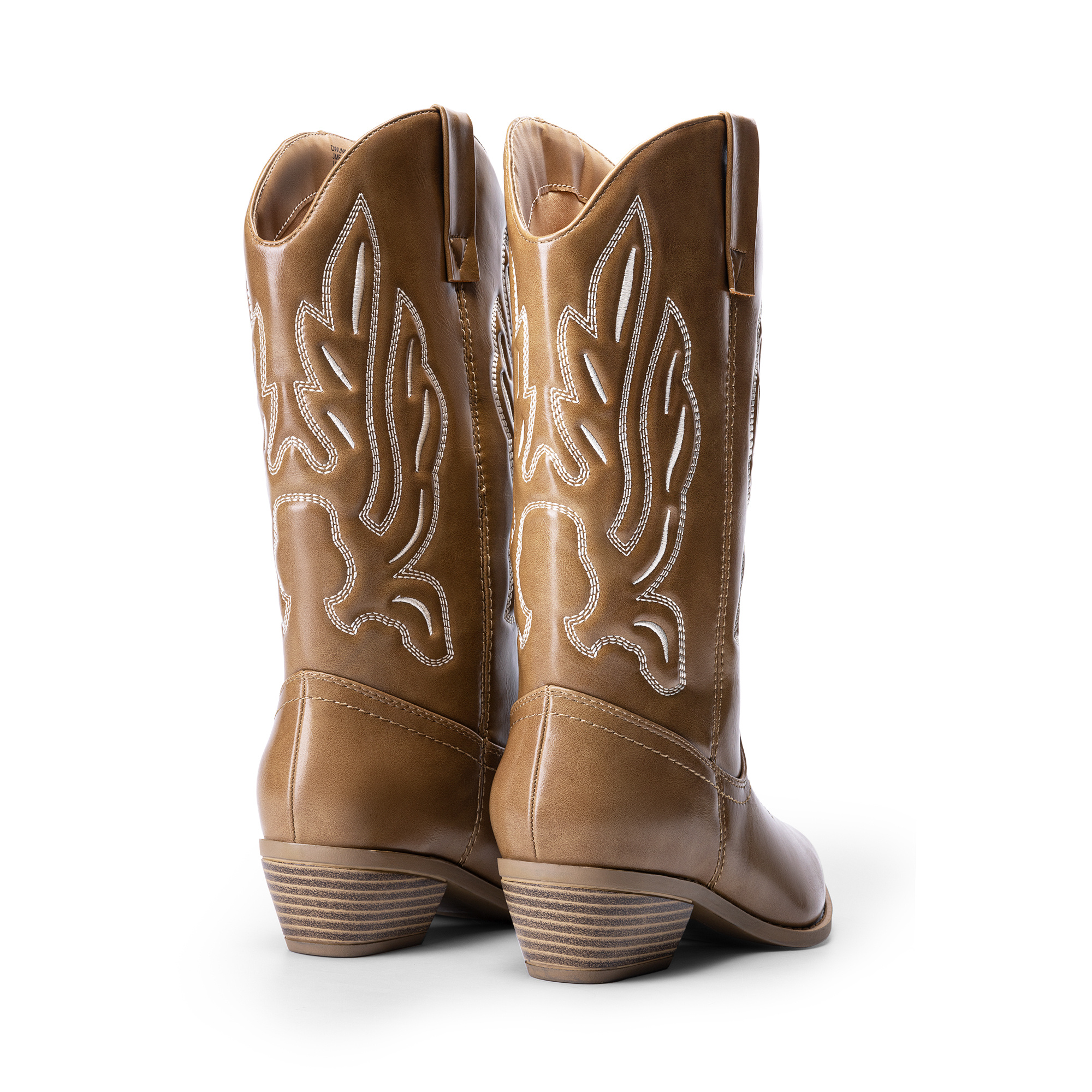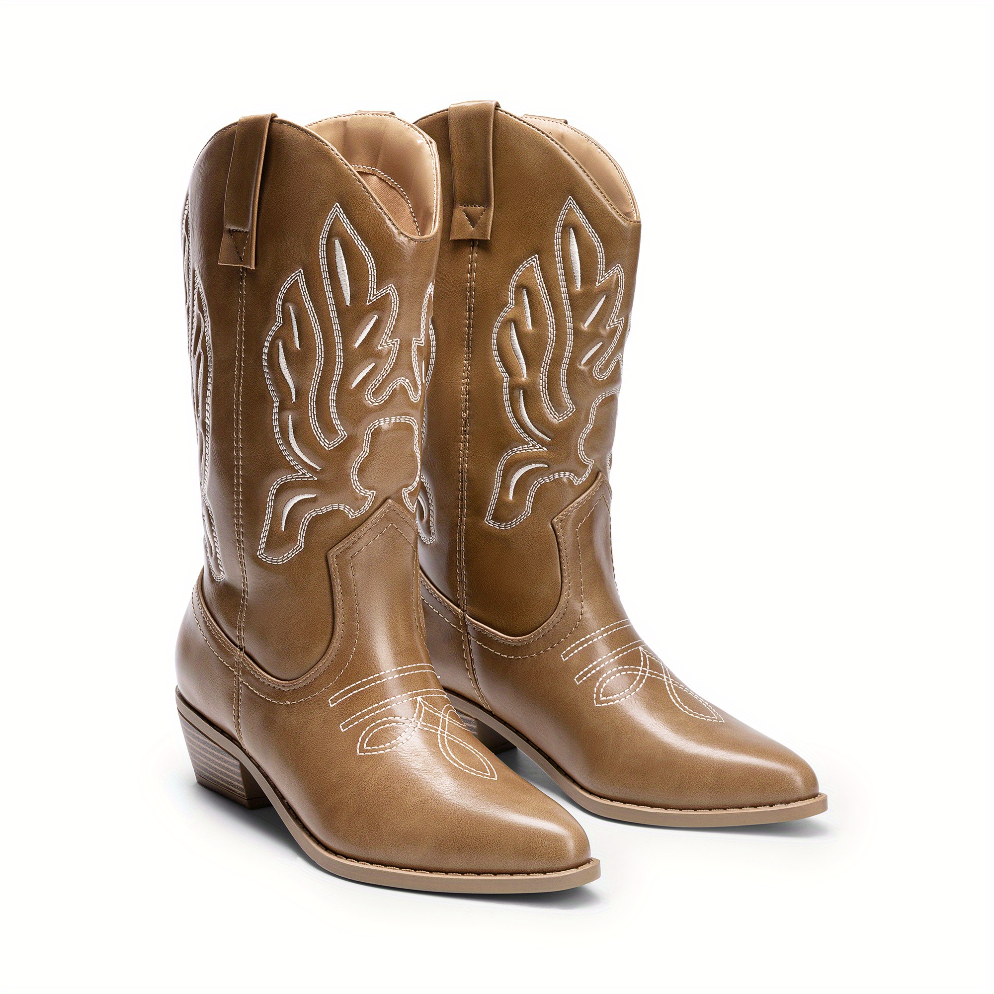 Home Women's Mid Calf Boots Women’S Western Cowgirl Boots – Mid-Calf Cowboy Boots with Handcrafted PU Cover, Brown Western Boot with Zipper Closure, Cushioned TPR Outsole for Western Dance, Everyday & Formal Events – Durable Women’S Cowboy Footwear, Square Toe Cowboy Boots
