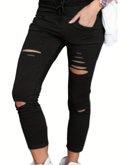 Women’S High-Waisted Ripped Stretch Denim Jeans – Butt Lifting & Distressed Skinny Pants, Casual M-XXL, Black, Springu002FSummeru002FFall Wear, High Waisted Jeans