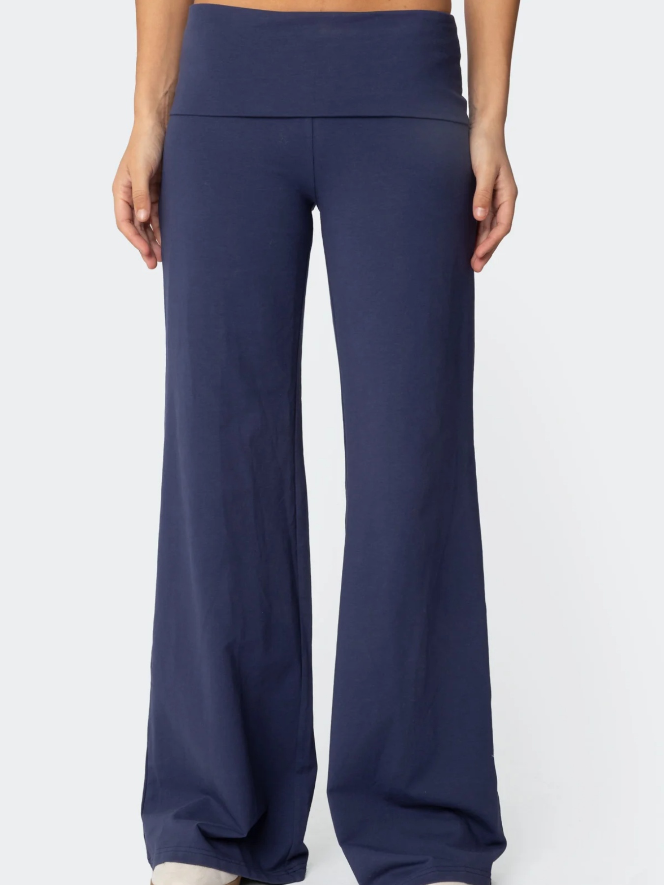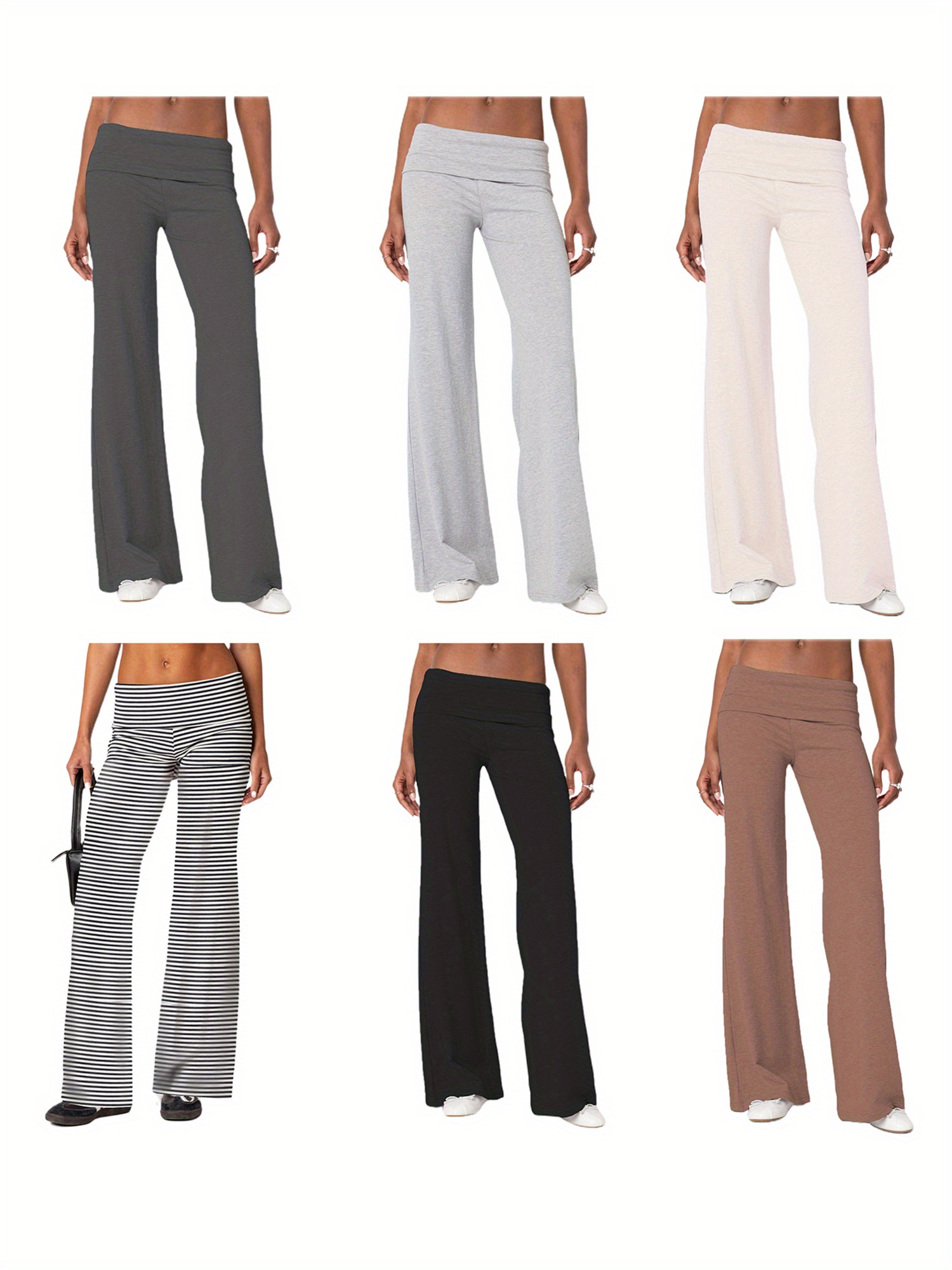 Home Women's Pants Women’S Y2K Spring Summer Baggy Pants Foldover Waist Solid Color Loose Wide Leg Pants