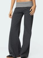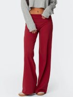 Women’S Y2K Spring Summer Baggy Pants Foldover Waist Solid Color Loose Wide Leg Pants